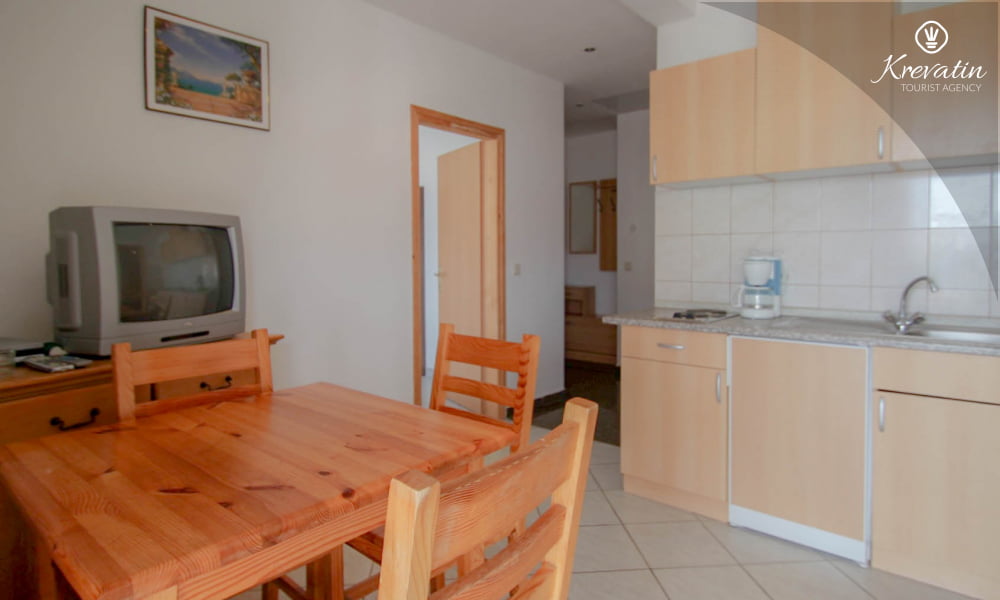 Questo appartamento per fino a 4 persone, situato al secondo piano, è composto da due camere da letto, un soggiorno e una cucina. La cucina è attrezzata con piano cottura elettrico, frigorifero e macchina per il caffè. C'è anche un bagno con doccia e un balcone con mobili. SAT-TV, WLAN, lenzuola e asciugamani sono inclusi nel prezzo. Animali domestici non sono ammessi.
