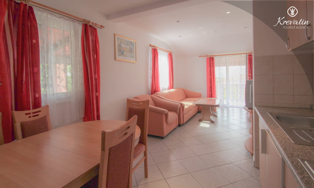 Questo appartamento per 2 fino a 4 persone, situato al secondo piano, è composto da due camere da letto, un soggiorno con un divano letto e una cucina. La cucina è attrezzata con piano cottura elettrico, frigorifero e macchina per il caffè. C'è anche un bagno con doccia e un balcone con mobili. SAT-TV, WLAN, aria condizzionata, lenzuola e asciugamani sono inclusi nel prezzo. Animali domestici non sono ammessi.
