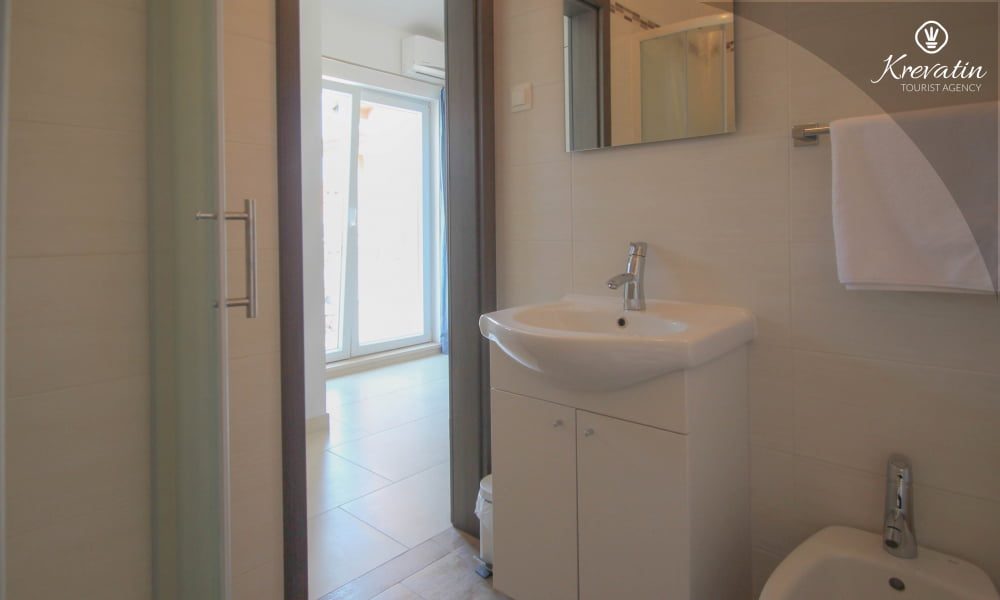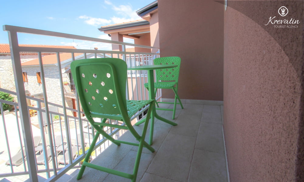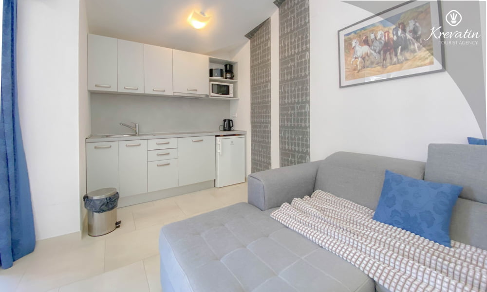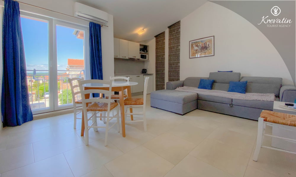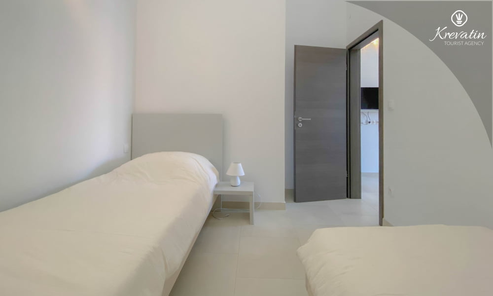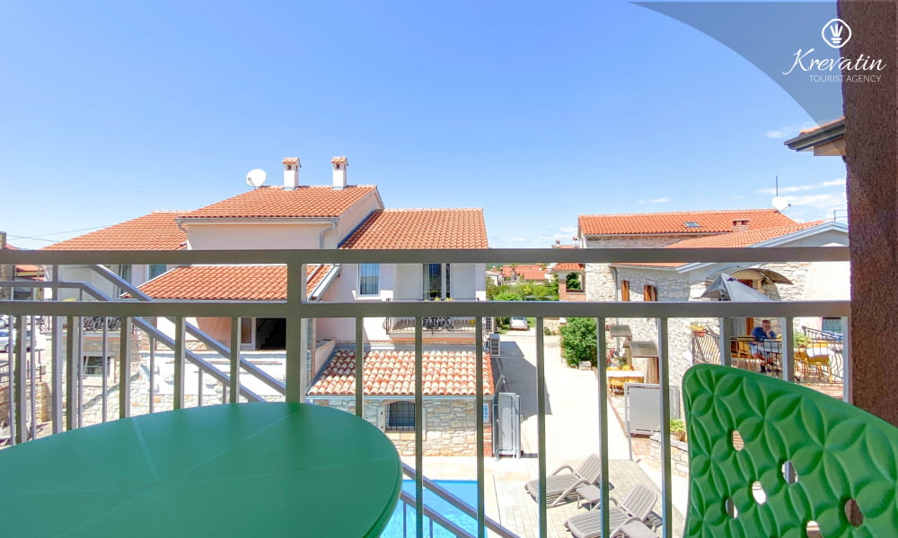 Questo appartamento per fino 4 persone è situato al primo piano e consiste da due camere da letto, un soggiorno e una cucina con zona pranzo. La cucina è dotata di piano cottura elettrico, forno a microonde, frigorifero e macchina per il caffè. C'è un bagno con doccia e wc ed un terrazzo con mobili. Inoltre c'è una piscina pre uso in comune. SAT-TV, aria condizionata, WLAN, lenzuola e asciugamani sono inclusi nel prezzo. Animali domestici non sono ammessi.