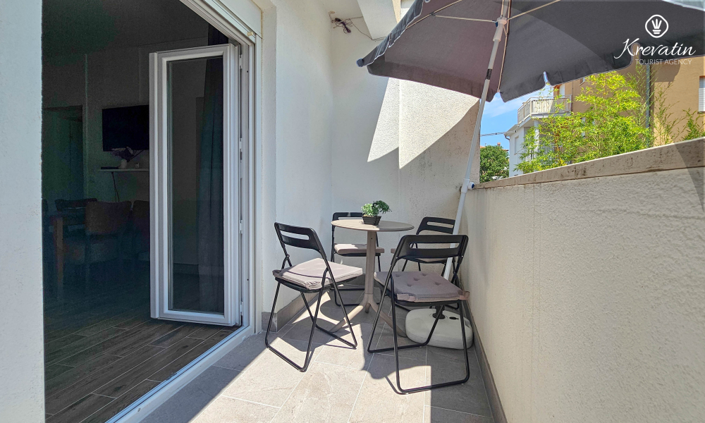 L'appartamento dispone di due camere da letto confortevoli, una cucina con attrezzatura di base per la preparazione dei pasti e un balcone che offre uno spazio piacevole per rilassarsi, anche se non ha vista sulla piscina. Gli ospiti hanno accesso alla piscina in comune all'interno della struttura – perfetta per rinfrescarsi nelle giornate di sole.