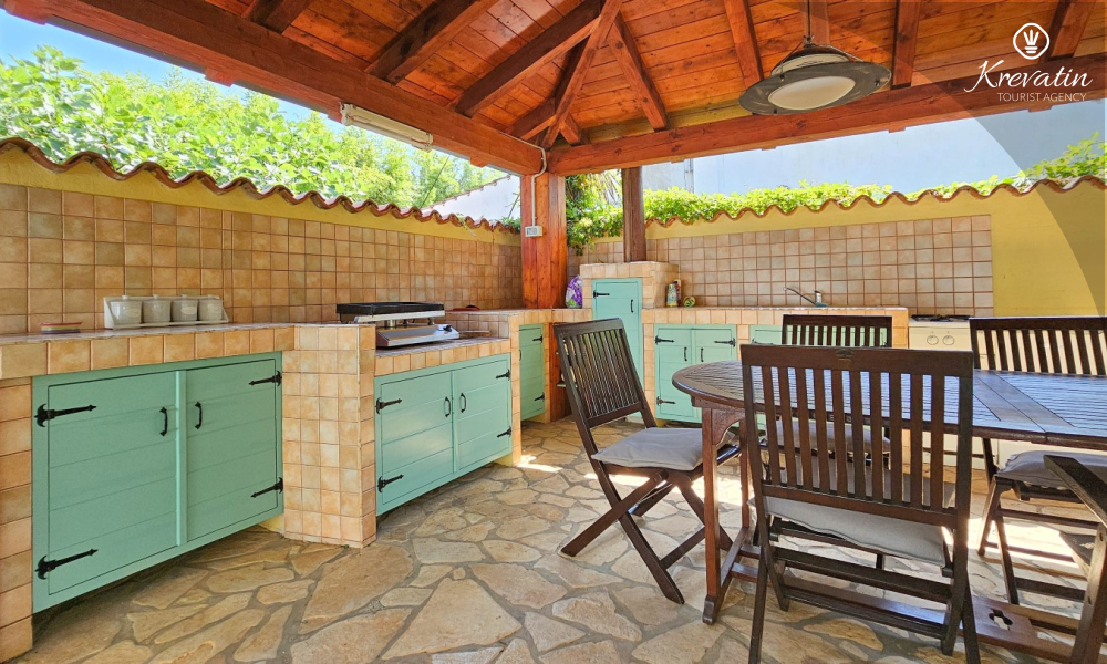 C'è anche una piscina in comune, ideale per rinfrescarsi e rilassarsi, nonché una terrazza coperta con barbecue, dove è possibile preparare deliziosi pasti e godere dei benefici del clima mediterraneo.