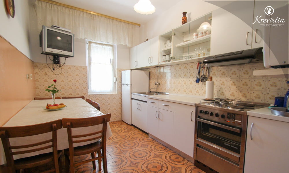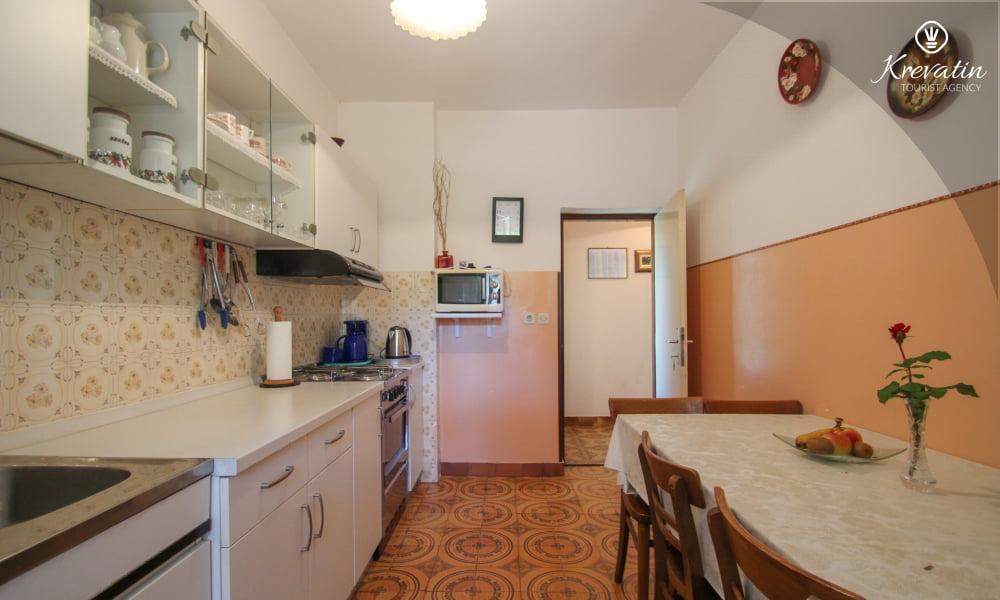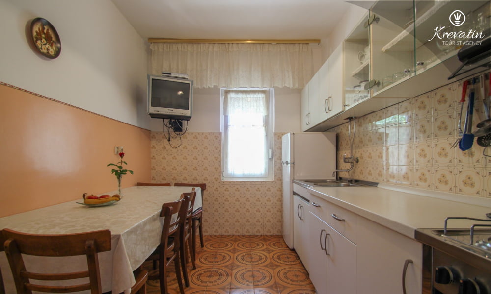 L'appartamento è composto da tre camere da letto, una cucina con sala da pranzo, dotata di servizi igienici di base, un bagno con doccia e WC, un WC aggiuntivo e una terrazza coperta con tavolo e sedie, ideale per incontri all'aperto.