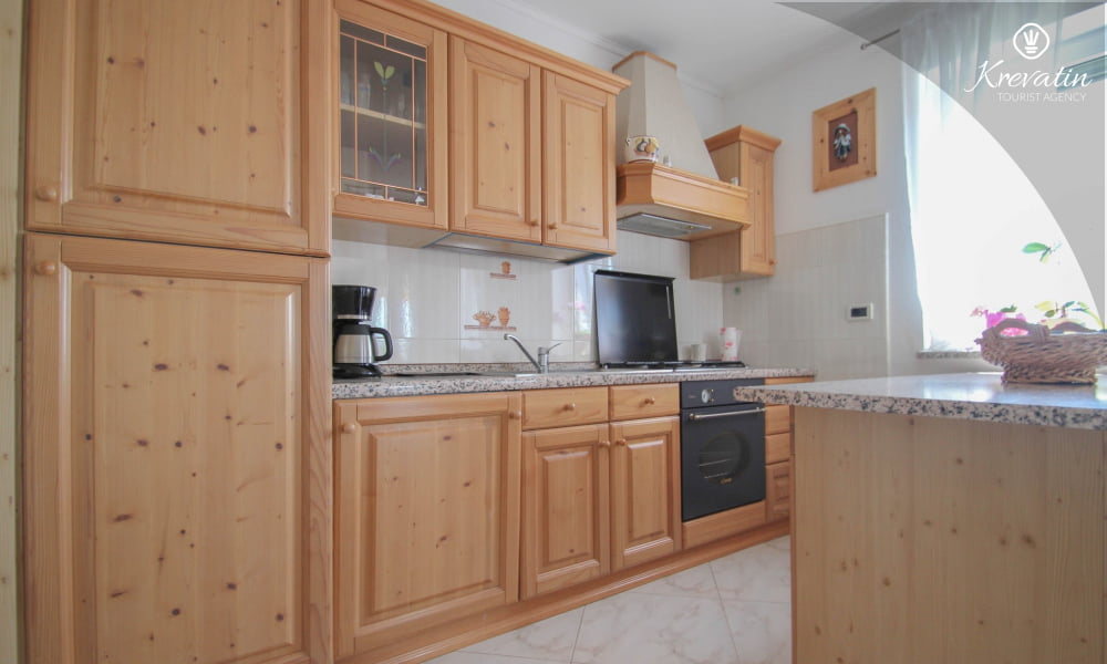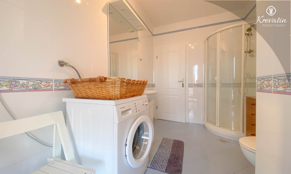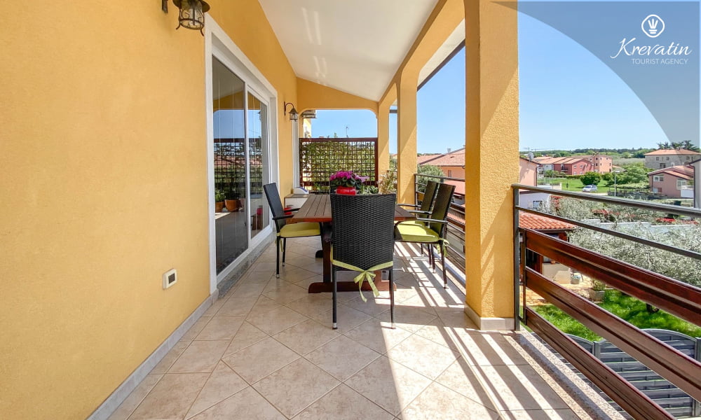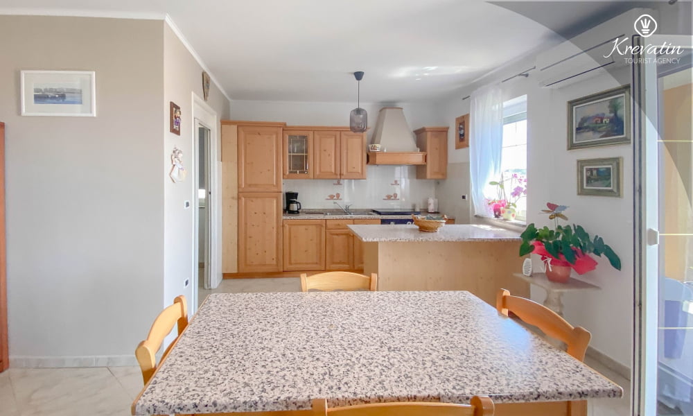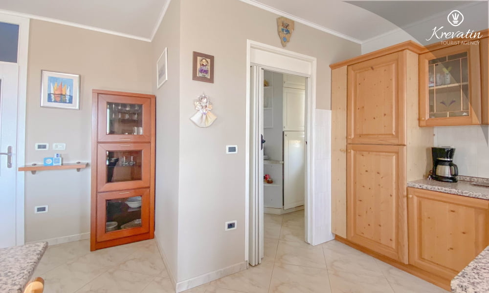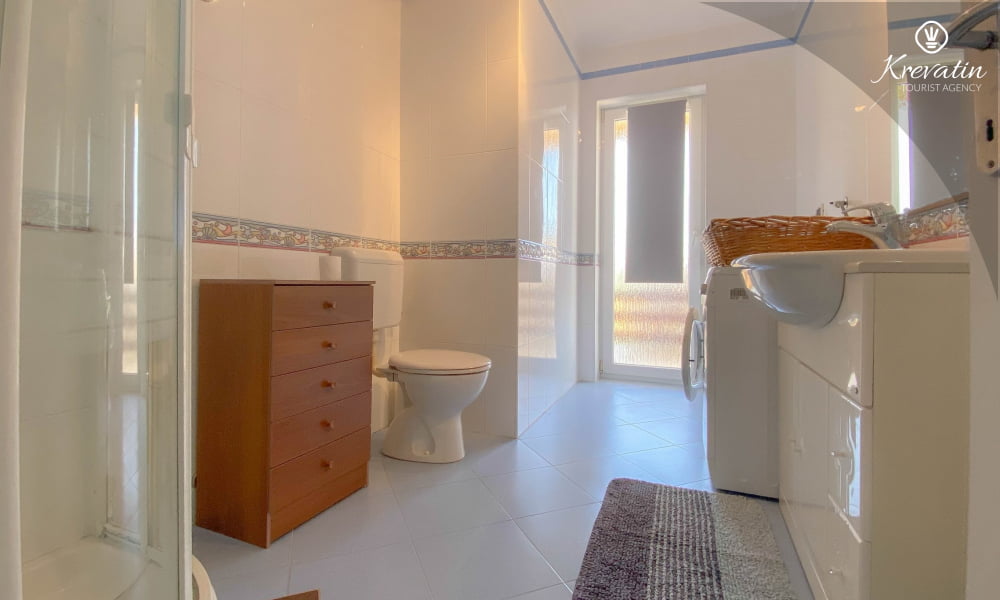 Questo appartamento per un massimo di 4 persone si trova al primo piano ed è composto da due camere da letto, un soggiorno e una cucina. La cucina è attrezzata con fornelli a gas, forno, lavastoviglie, frigorifero e caffettiera. Inoltre ci sono due bagni uno con vasca e uno con doccia e wc e un bel balcone arredato. C'è anche una terrazza con barbecue e una piscina ad uso comune. SAT-TV, aria condizionata, WLAN, biancheria da letto e da bagno sono inclusi nel prezzo.