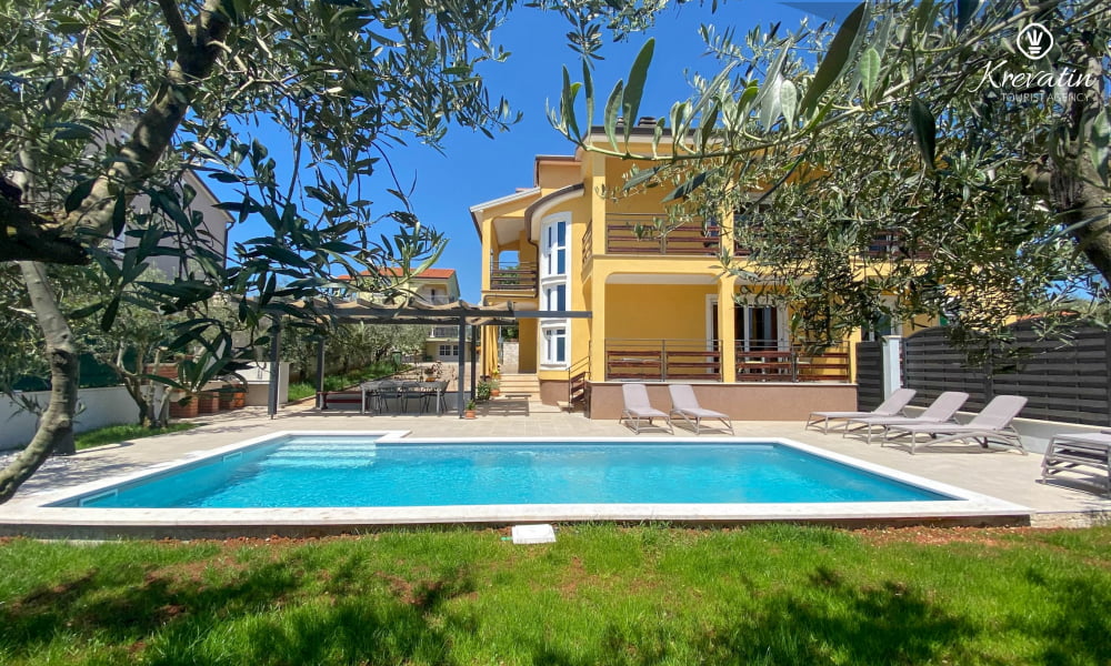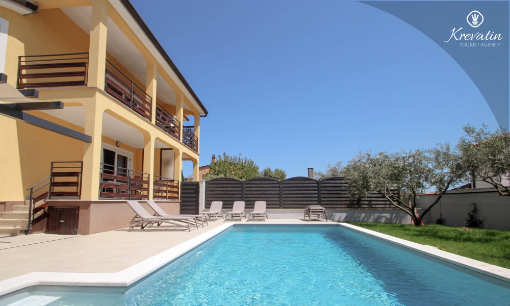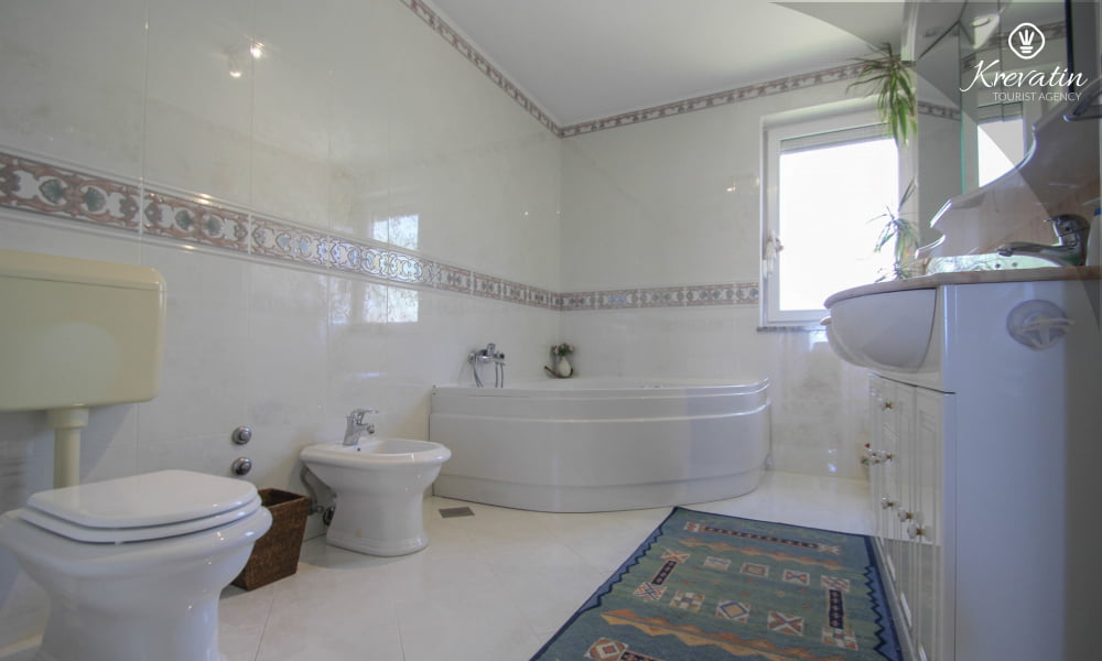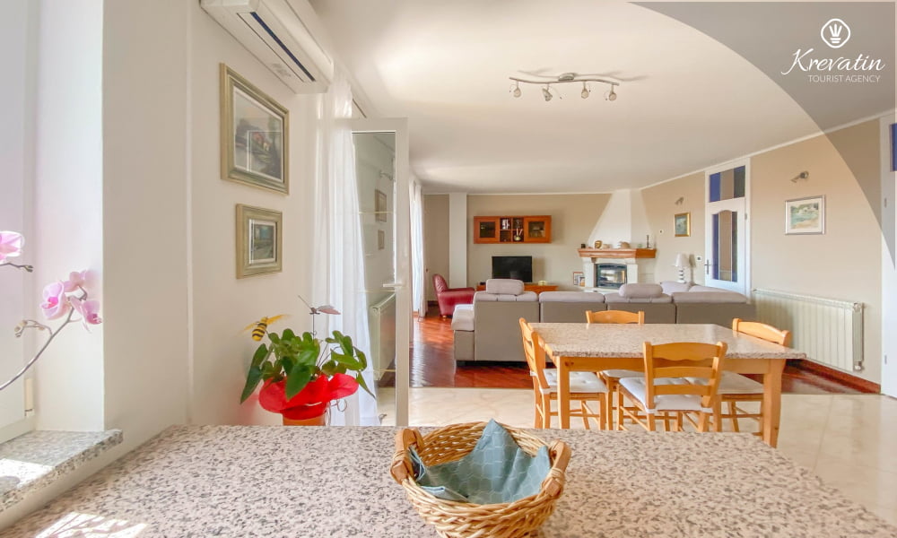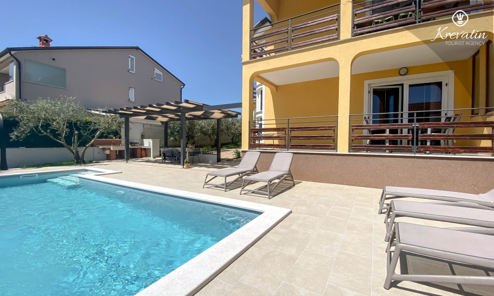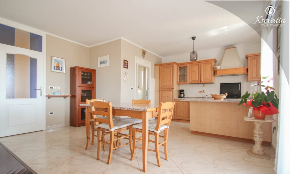 Questo appartamento per un massimo di 4 persone si trova al primo piano ed è composto da due camere da letto, un soggiorno e una cucina. La cucina è attrezzata con fornelli a gas, forno, lavastoviglie, frigorifero e caffettiera. Inoltre ci sono due bagni uno con vasca e uno con doccia e wc e un bel balcone arredato. C'è anche una terrazza con barbecue e una piscina ad uso comune. SAT-TV, aria condizionata, WLAN, biancheria da letto e da bagno sono inclusi nel prezzo.