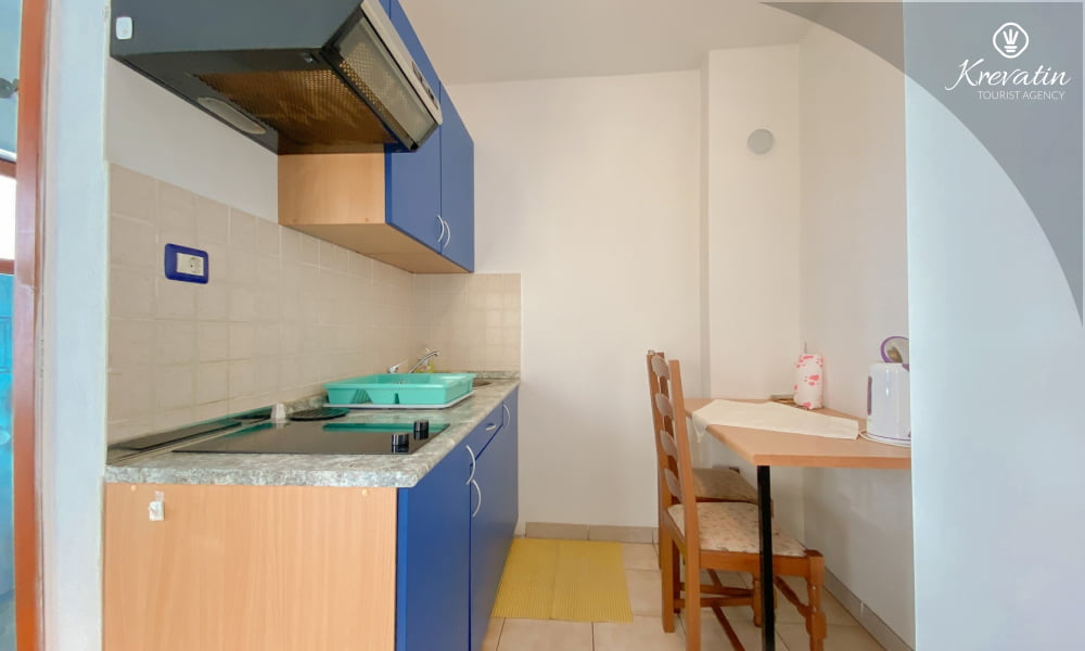 L'appartamento è composto da una camera da letto con letto matrimoniale e una cucina attrezzata con tutto il necessario per preparare pasti semplici. L'appartamento dispone anche di un pratico bagno con doccia e WC, e potrete rilassarvi sulla terrazza con tavolo e sedie, perfetta per vivere all'aperto.