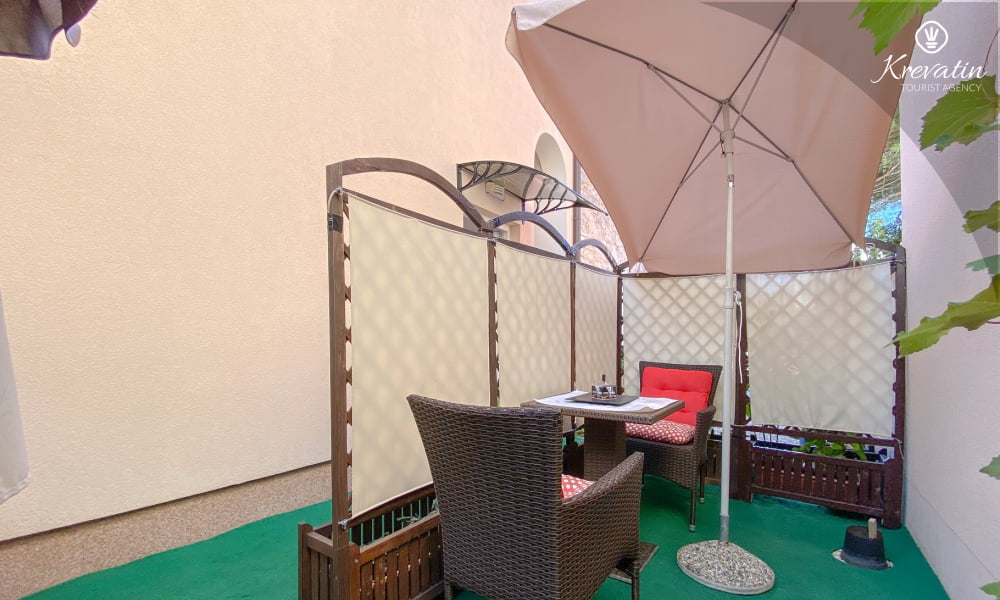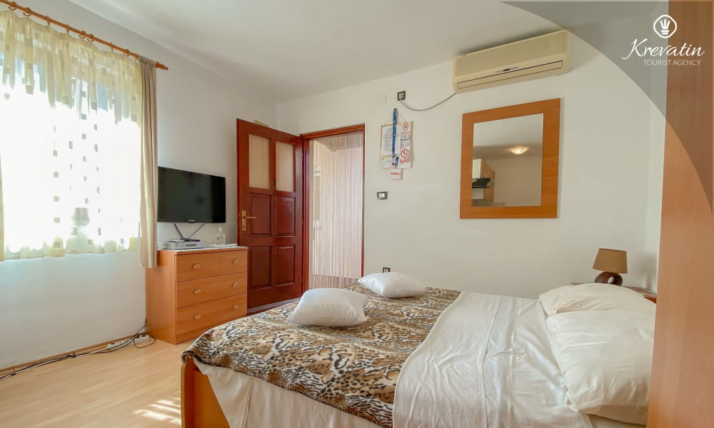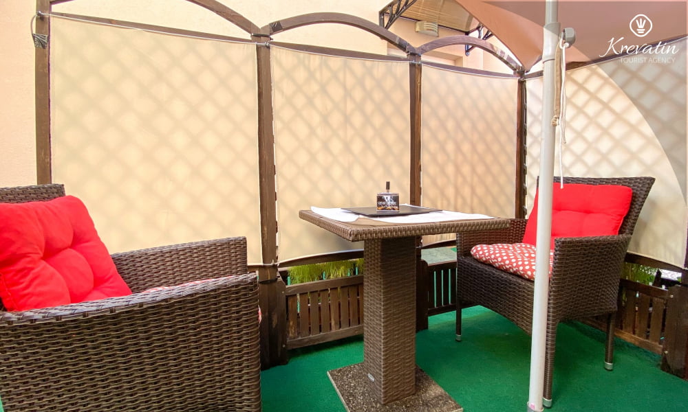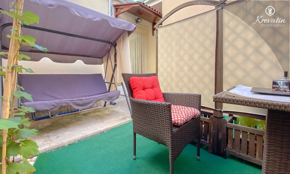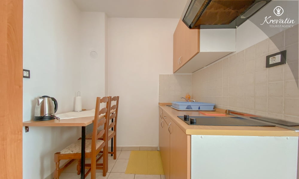 L'appartamento è composto da una camera da letto con letto matrimoniale e una cucina attrezzata con utensili di base per preparare i pasti. Dispone inoltre di un pratico bagno con doccia e WC e di una terrazza con tavolo e sedie, perfetta per mangiare all'aperto.