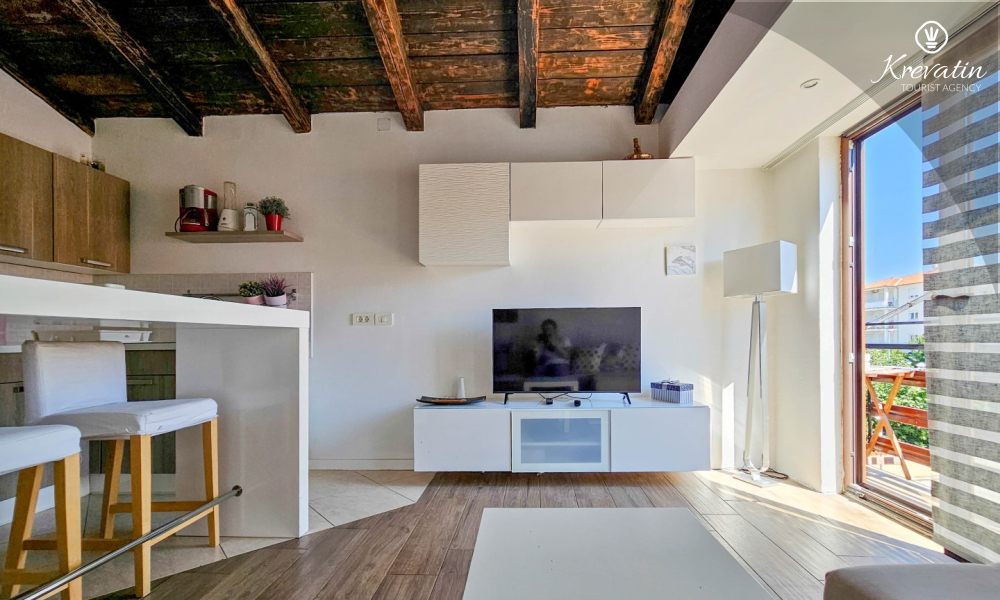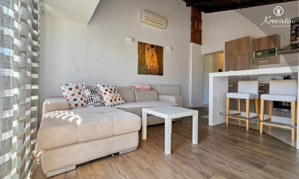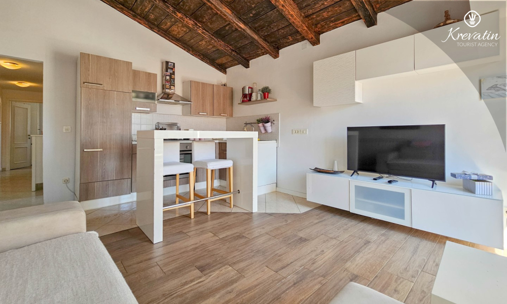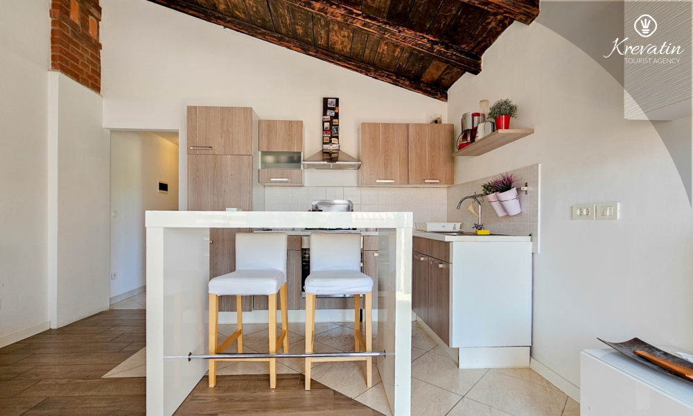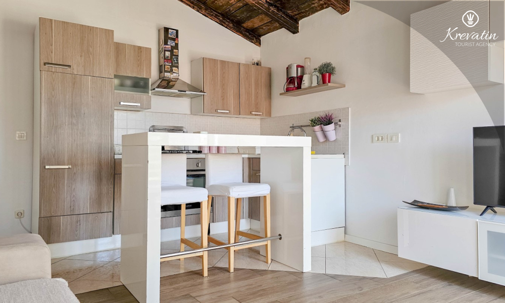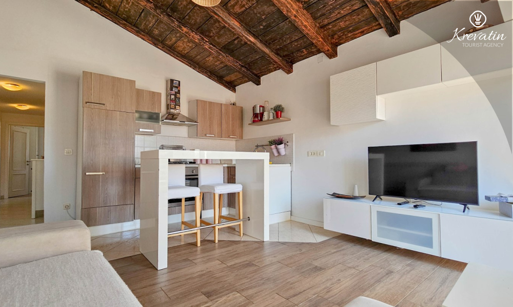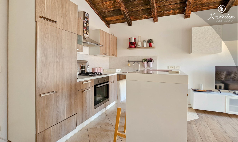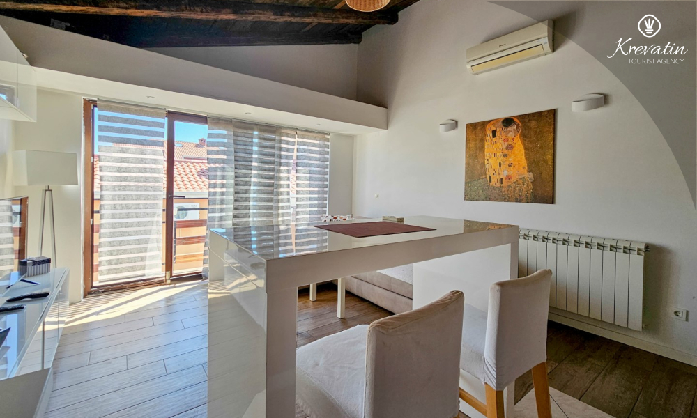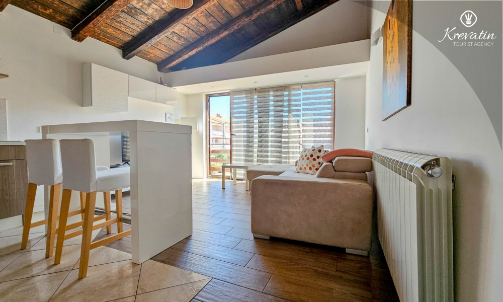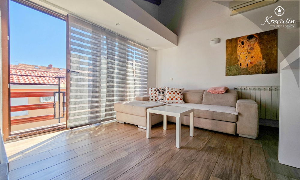 Benvenuti in un confortevole appartamento situato nella bellissima Cittanova. Il nostro grazioso appartamento, situato al 2° piano di un tranquillo condominio, vi offrirà comfort e relax durante il vostro soggiorno. Con 55 m2 di spazio, è l'ideale per le coppie che vogliono godersi una fuga romantica.