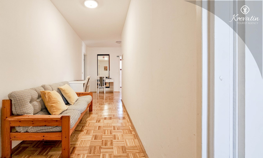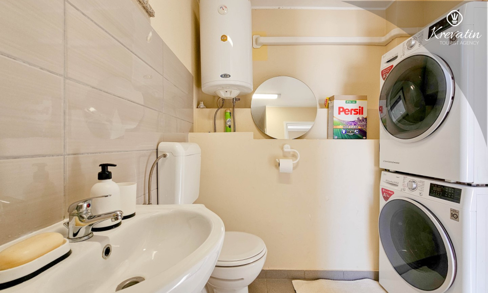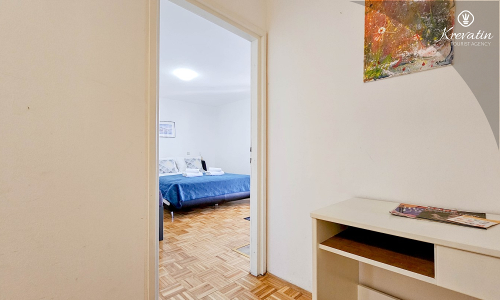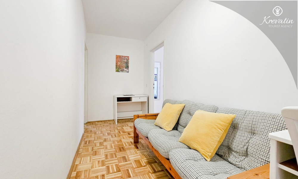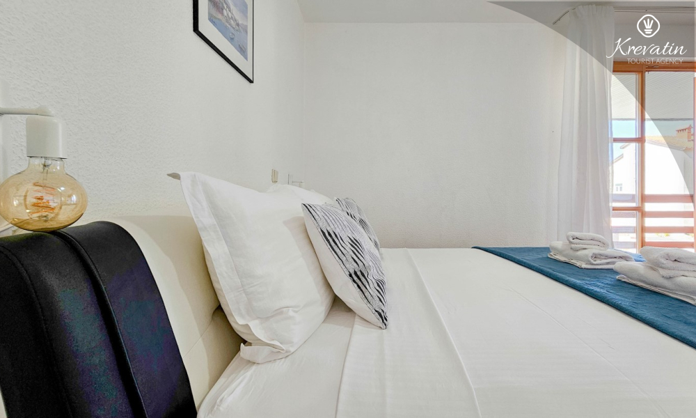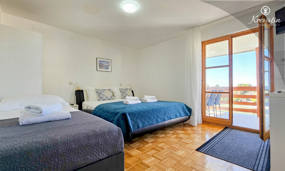 Lo spazio è organizzato in un open space: un letto matrimoniale, un letto supplementare per una terza persona e una piccola cucina con attrezzatura di base per preparare pasti semplici. Un bagno con doccia e WC si trova all'interno dell'unità. C'è anche un balcone, ideale per il caffè del mattino o per le riunioni serali.