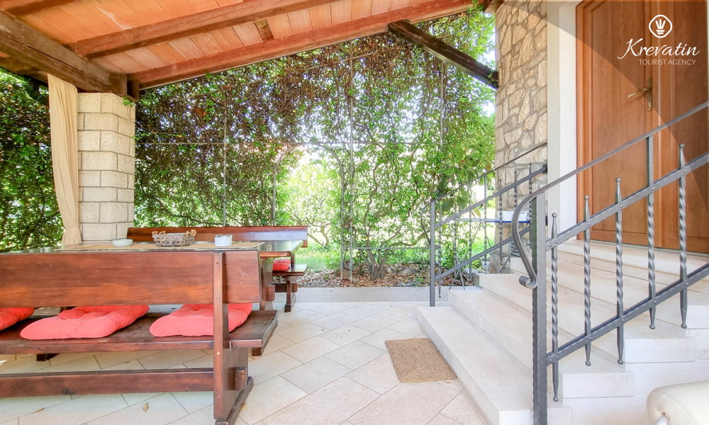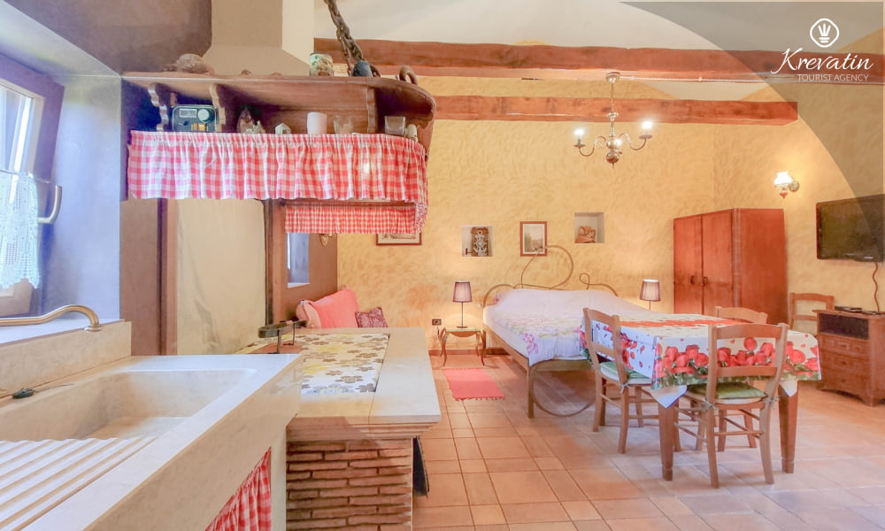 Si trova al piano terra e offre tutto il necessario per un soggiorno confortevole: una camera da letto collegata alla cucina, dotata di servizi essenziali, un bagno con doccia e WC e un'ampia terrazza con tavolo e sedie, perfetta per un caffè mattutino o una cena all'aperto.
