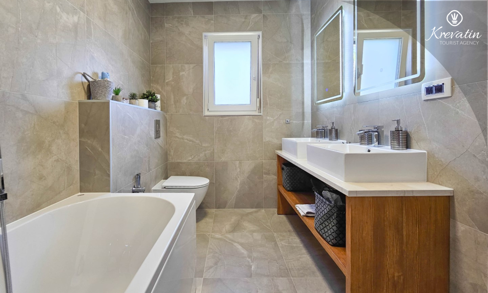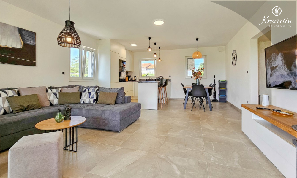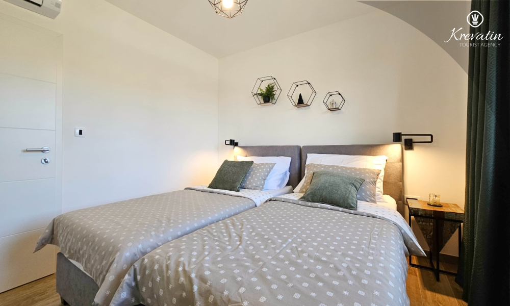 All'interno della villa troverete 2 comode camere da letto e 2 bagni moderni. Il soggiorno è spazioso e dotato di un divano. Qui puoi rilassarti e trascorrere del tempo con la famiglia o gli amici.