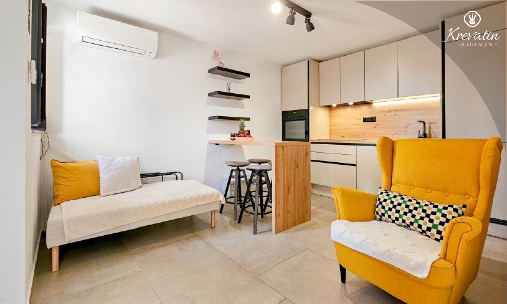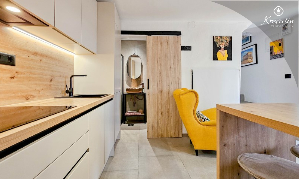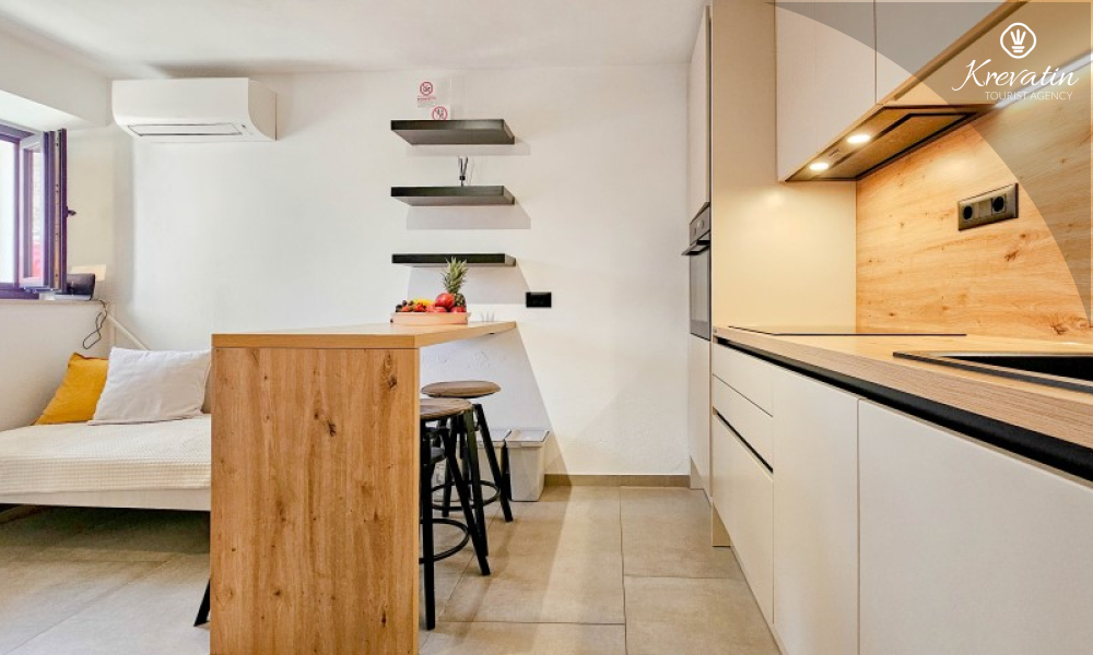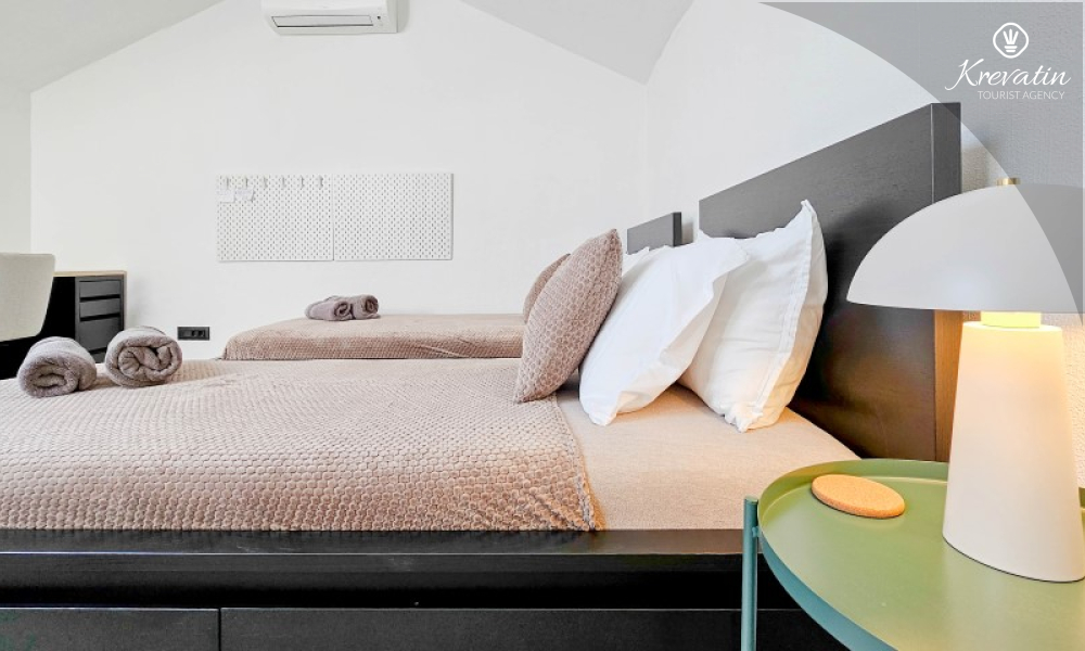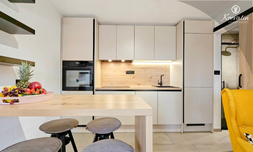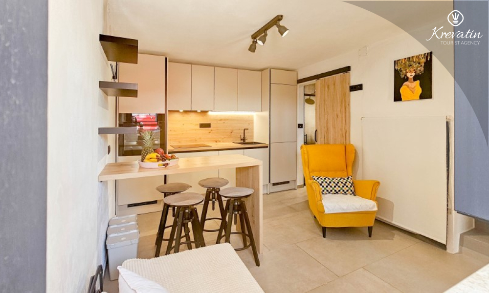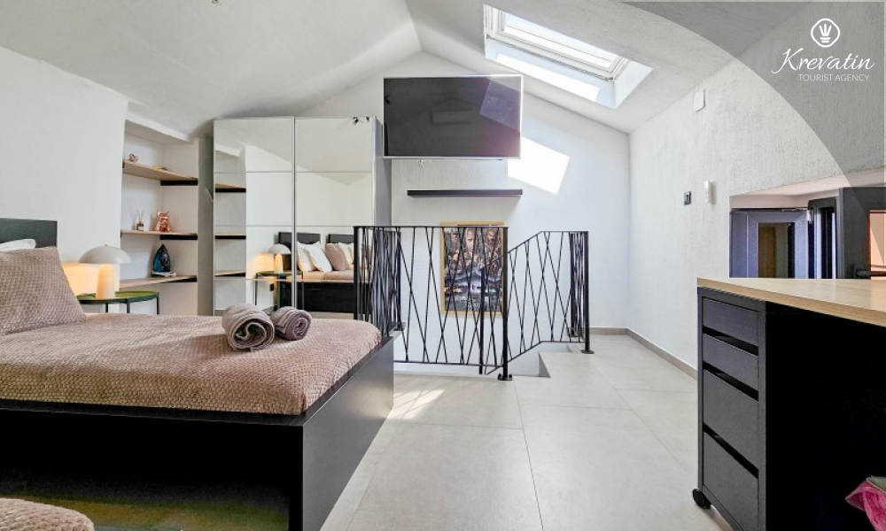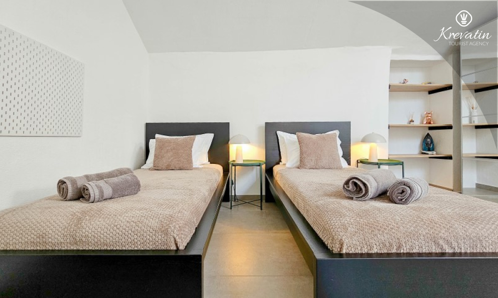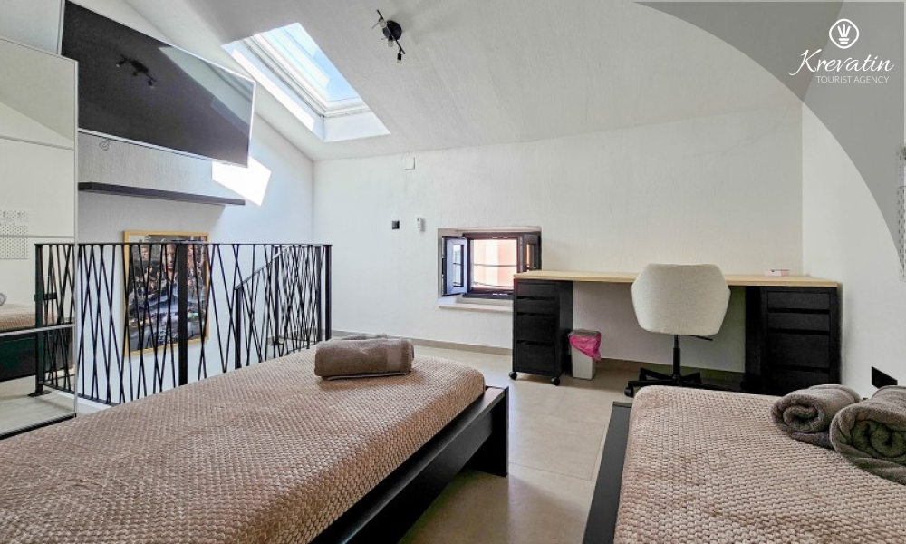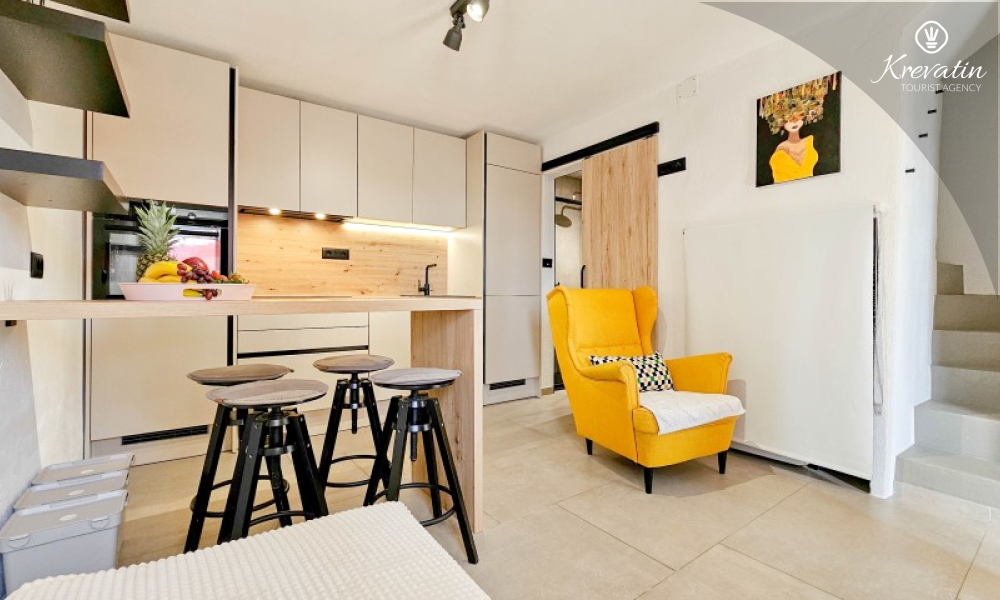 Questa elegante casa a schiera, situata nel cuore di Lovrečica e a soli 100 metri dal mare, si sviluppa su tre piani ed è la combinazione ideale di comfort, privacy e atmosfera mediterranea per un massimo di 4 persone.