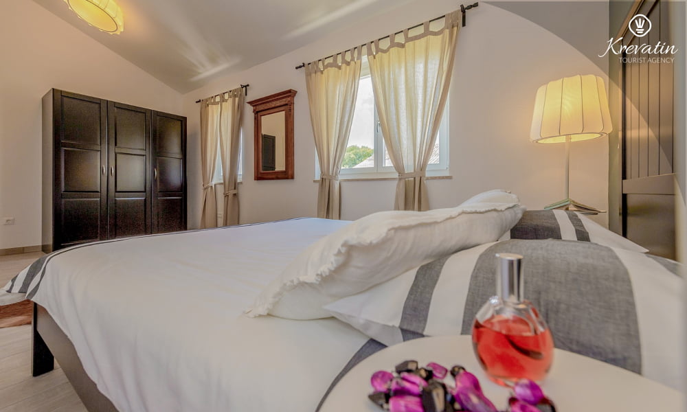 Villa Violet si trova al piano terra e ha una superficie di 120m2. Vi è un ampio soggiorno con divano letto collegato con cucina e sala da pranzo. La cucina è moderna e dotata di fornelli elettrici, forno, frigorifero, lavastoviglie, forno a microonde e macchina per il caffè. Ci sono due camere da letto (una con letto matrimoniale e un letto singolo e l'altra con letto matrimoniale), aria condizionata e TV satellitare. Ci sono 2 bagni. La villa ha una spaziosa terrazza con barbecue, un grazioso giardino e una piscina privata. Parcheggio privato, TV satellitare, aria condizionata, lavatrice, lavastoviglie, internet e piscina sono inclusi nel prezzo. Gli animali domestici sono ammessi a pagamento.