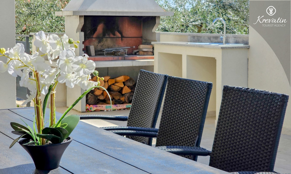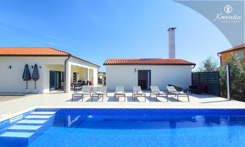 La casa dispone inoltre di un'ampia terrazza con barbecue, piscina ad uso privato e parcheggio privato. SAT-TV, aria condizionata, WLAN, lenzuola e asciugamani sono inclusi nel prezzo. Non sono ammessi animali. È richiesto un deposito di 400 euro.