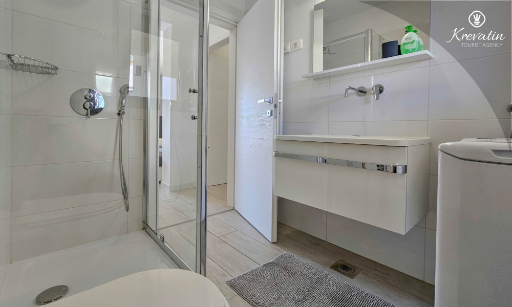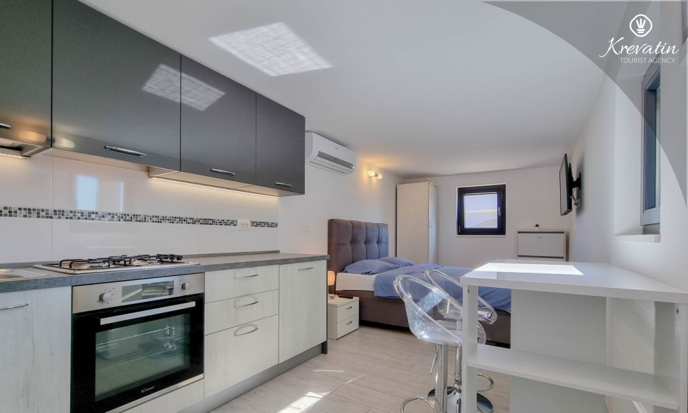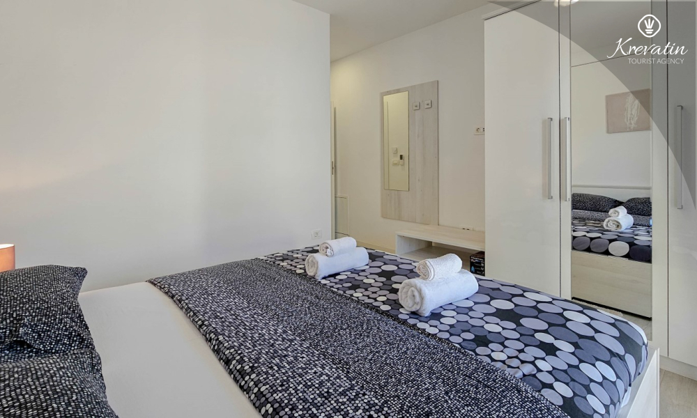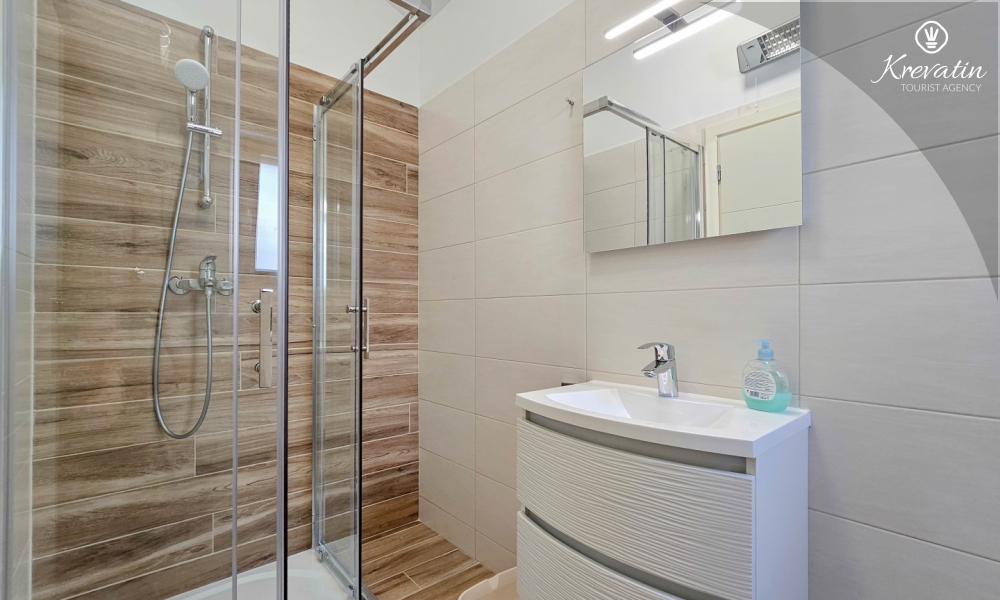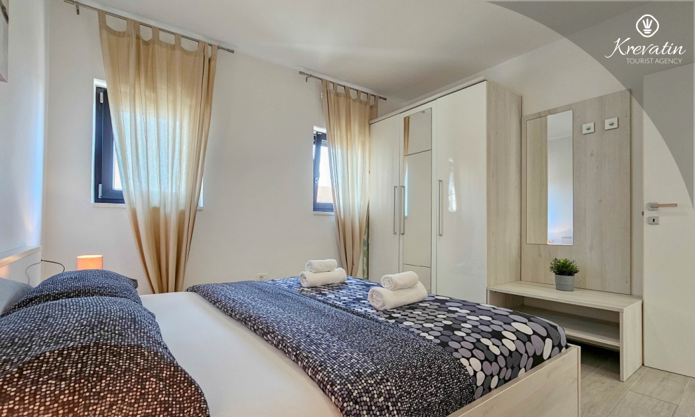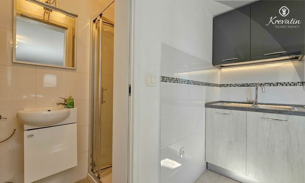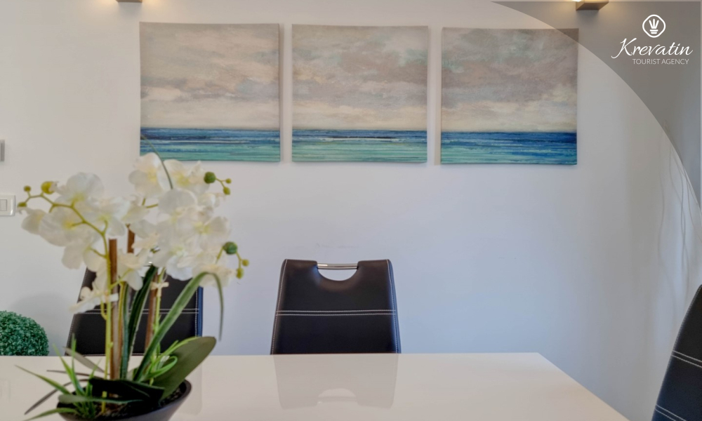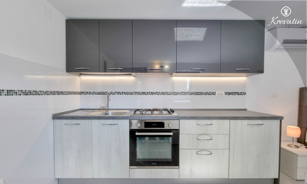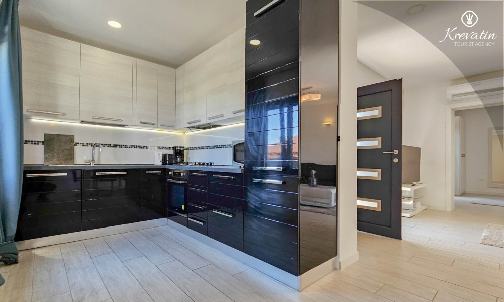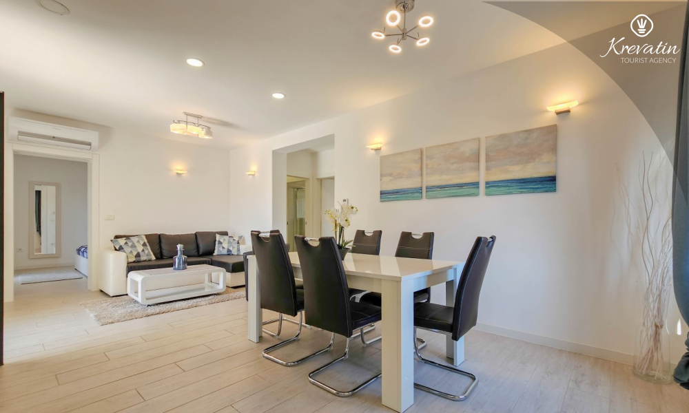 Questa casa vacanze da 8 a 10 persone è composta da tre unità, tutte situate al piano terra. Innanzitutto c'è un grande appartamento con tre camere da letto e un divano letto per due persone, due bagni e un soggiorno con cucina. La cucina è dotata di fornello a gas, frigorifero, lavastoviglie e macchina per il caffè. Secondo, c'è un monolocale per due persone con un letto matrimoniale, un bagno e una piccola cucina. E terzo, c'è una taverna con cucina attrezzata, un grande camino interno e un bagno.