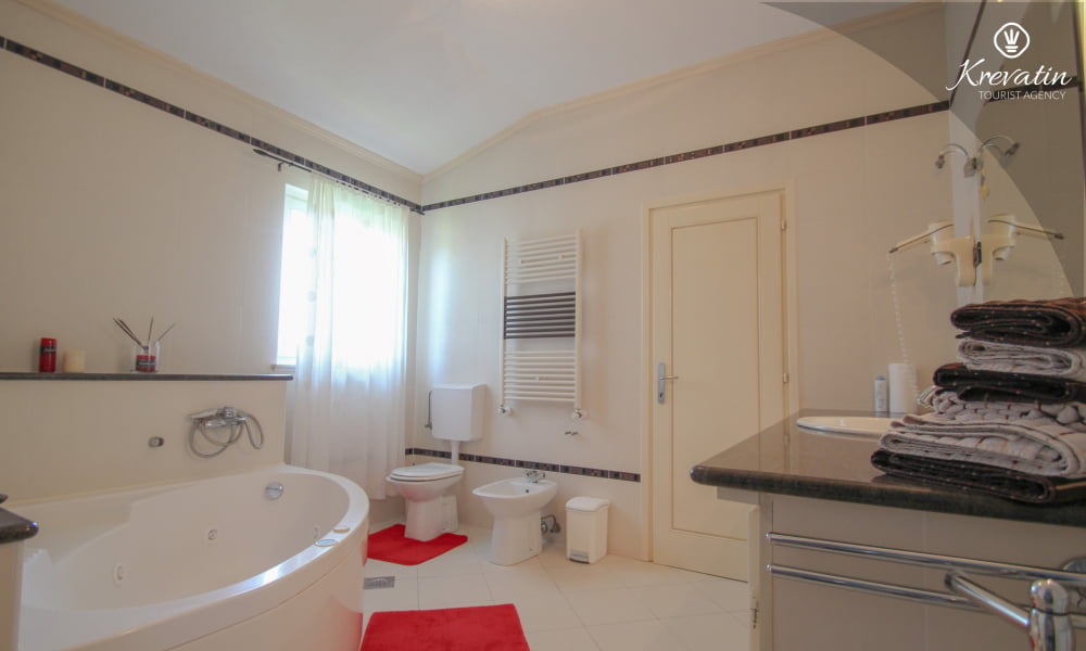 La Villa Nada è su due piani ed ha una superficie di 160m2. Al piano terra c'è una cucina con sala da pranzo, una camera da letto matrimoniale ed un bagno con la vasca e la doccia. La cucina dispone di un fornello elettrico, forno, frigorifero, lavastoviglie, forno a microonde e macchina per il caffè. Ancora due camere da letto e un bagno con la doccia sono situati al primo piano. C'è una spaziosa terrazza, il giardino con barbecue e la piscina privata. Parcheggio, TV satellitare, aria condizionata, lavatrice, lavastoviglie, internet e la piscina sono inclusi nel prezzo. Animali domestici non sono ammessi.
