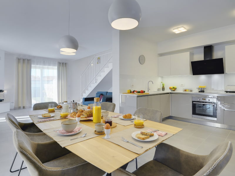 La Villa Maria Andrea è su due piani ed ha una superficie di 175m2. Al piano terra c'è un ampio soggiorno collegato con la cucina. La cucina dispone di un fornello elettrico, forno, frigorifero, lavastoviglie, forno a microonde e macchina per il caffè.